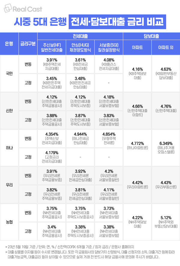 이 표를 통해 각 은행의 대출 상품을 비교하고, 가장 유리한 조건을 찾아보시기 바랍니다.